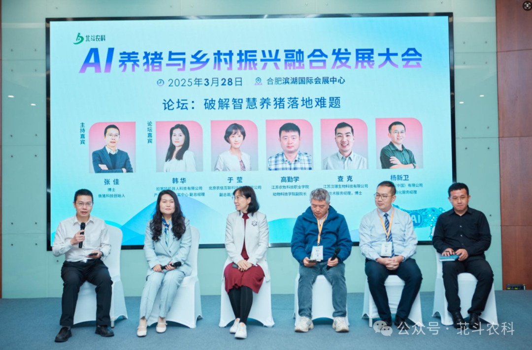 最后,微猪科技创始人张佳博士主持了论坛互动环节,围绕 “破解智慧养猪的落地难题”,多位行业嘉宾就智慧养猪的现状、挑战、机遇与未来趋势展开了深入讨论。