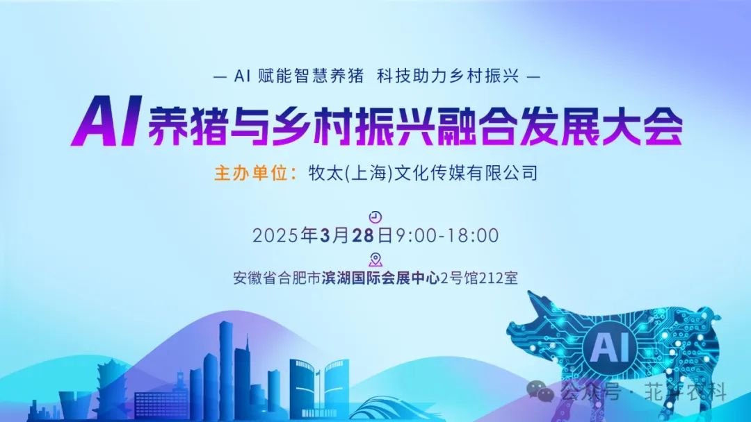 2025年3月28日,由牧太(上海)文化传媒有限公司主办,北斗农科融媒体、上海国展展览中心有限公司承办,皮埃西(上海)农业科技有限公司(PIC中国)、科普利信贸易(北京)有限公司、江苏汉璟生物科技有限公司等协办的 “AI养猪与乡村振兴融合发展大会”,在安徽合肥滨湖国际会展中心成功举办。本次大会汇聚了众多行业专家、企业代表,围绕AI技术在养猪业的创新应用及与乡村振兴的融合发展展开深入探讨,搭建起了行业交流合作的优质平台。