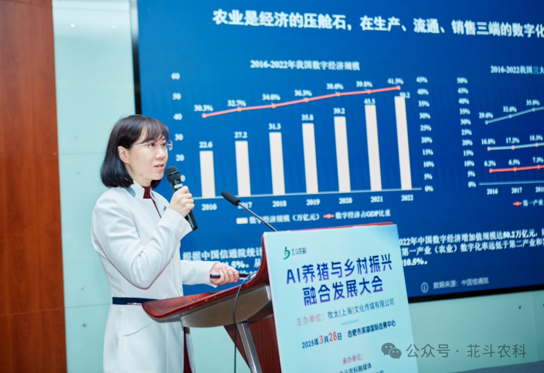 北京农信互联科技集团有限公司副总裁于莹介绍了 “软硬智深度赋能,构建智慧农业新生态”。农信互联历经十年发展,形成了软件、硬件与智能化深度融合的服务模式。在软件层面,打造MAS管理服务体系,涵盖行情保、猪病通等产品,贯通农牧企业前中后台;在硬件方面,推出AI云盒、盘菇仪等设备,并拥有AI算法和农业大模型 “猪小慧”。通过八大应用场景和数字孪生技术,实现猪场智能化管理、交易在线化,助力农牧企业降本增效,推动农业数字化发展。