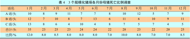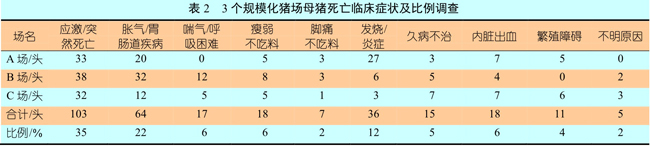 规模化猪场母猪死亡原因调查和分析